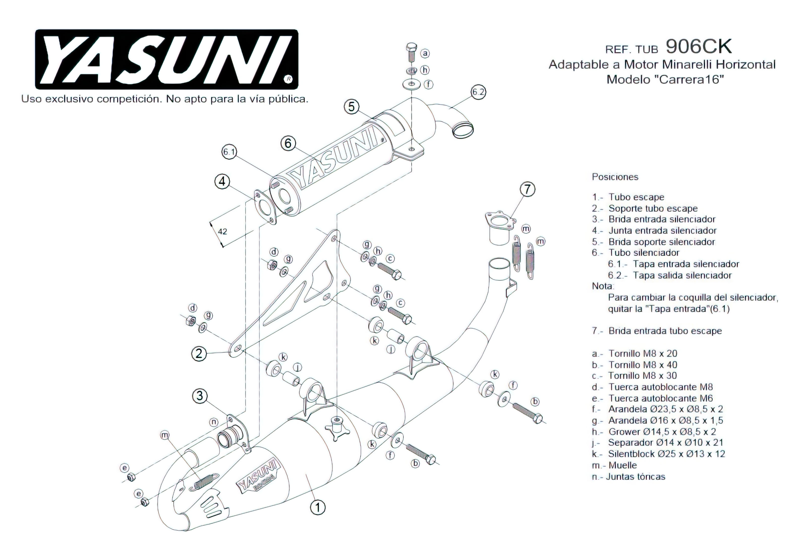 Die Auspuffanlage Yasuni Carrera 16, kurz C16,  ist eine hochwertige Racing-Anlage vom spanischen Hersteller Yasuni. Klassischer Resonanzauspuff mit Alu Endschalldämpfer (in mehreren Farben erhältlich).