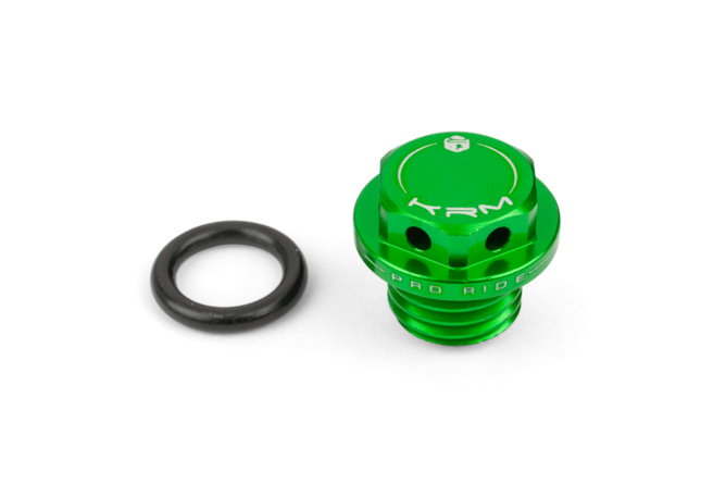 Von der Tuningschmiede KRM Pro Ride aus Frankreich: Öleinlassschraube für Rieju MRT, Beta RR, Fantic 50, Sherco 50, Yamaha DT u.v.m. Schaltmopeds. Der Stopfen ist komplett aus Aluminium CNC-gefräst, hochwertig eloxiert und mit KRM Lasergravur versehen.