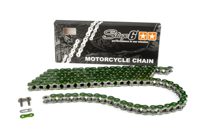 Reinforced chain with 428 pitch from Stage6 for 50cc motorcycles / supermotos and all other vehicles that require a 428 pitch drive chain.