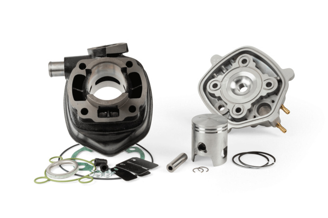The cylinder or cylinder kit is the heart of the engine on scooters, motorcycles and mopeds. It consists of a cylinder, a piston with piston ring(s), a cylinder head and gaskets needed for installation.