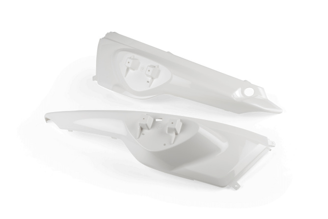 Rear Side Panels white Yamaha Slider / MBK Stunt. Replace your old, shabby looking plastics with these brand new ones. They are very similar to the original ones so simply take off the original panels, mount the new ones - done.