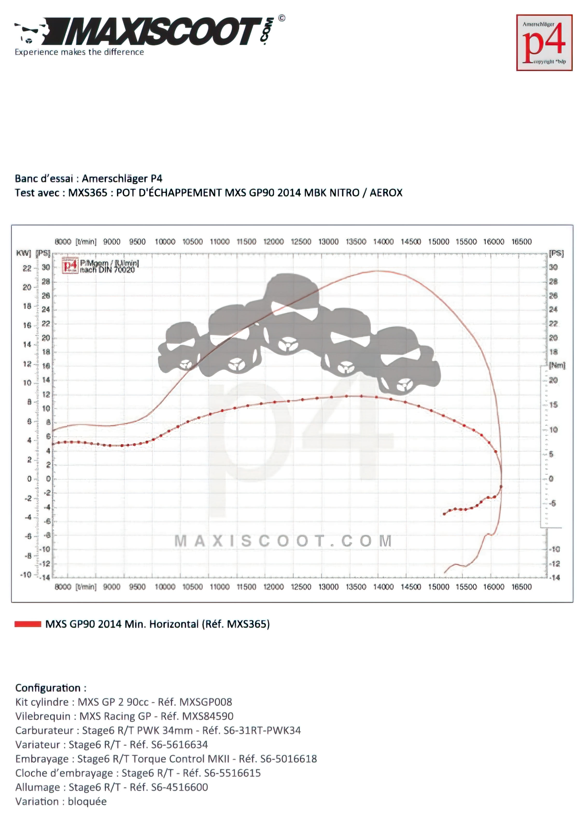 Maxiscoot y MXS Racing (el departamento de carreras de Maxiscoot) se enorgullecen de presentar el resultado de años de desarrollo: el escape MXS GP90 2014 para MBK Nitro / Aerox.