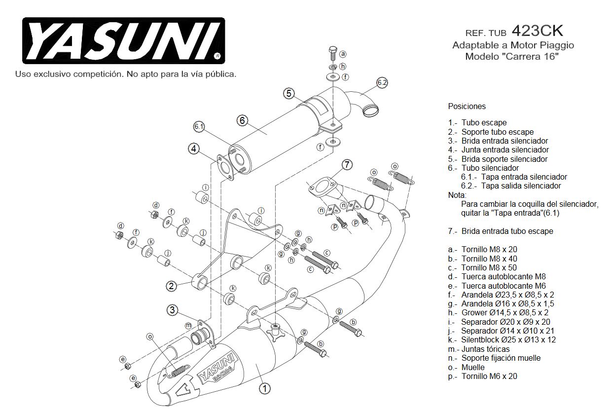 características destacadas del tubo de escape Yasuni C16 piaggio nrg: