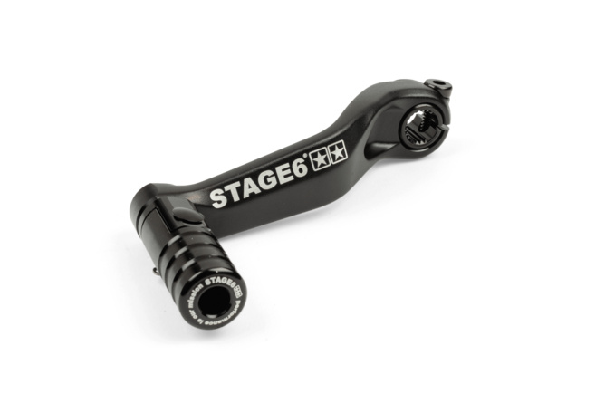 Palanca de cambios premium, forjada y mecanizada mediante CNC, con un acabado anodizado en los colores distintivos de Stage6. Presenta el logotipo y las dos estrellas de Stage6 grabados con láser, además de un discreto marcado en el propio pedal. Este componente es compatible con ciclomotores de 50cc equipados con motor AM6.