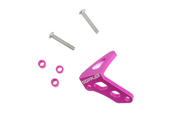 La protection est simplement vissée sur le carter moteur, les vis et les entretoises correspondantes sont évidemment fournies. Disponible en différentes couleurs, elle est assortie aux protections de pignon Doppler.
