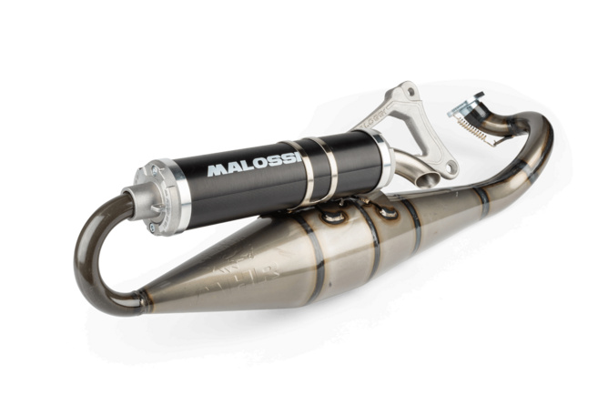 Pot d'échappement racing de la maison Malossi conçu pour les scooters à moteur Minarelli horizontal tels que MBK Nitro, Yamaha Aerox ou encore Malaguti. Cet échappement est initialement conçu pour fonctionner en harmonie avec le kit cylindre Malossi MHR Racing de 70cc, mais il conviendra également sur de nombreux cylindres de gamme racing 70cc.