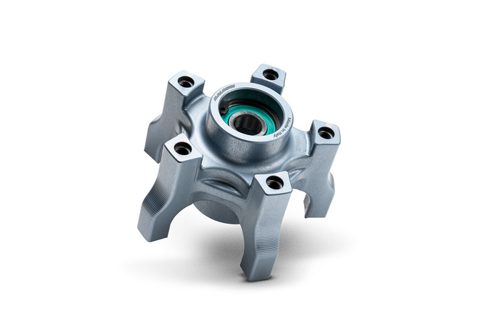 Al posto del tradizionale alluminio pressofuso, il mozzo è realizzato in Ergal pieno. Ciò garantisce un equilibrio ottimale tra elevata rigidità e peso ridotto, ideale per configurazioni racing in cui la massima stabilità è determinante.