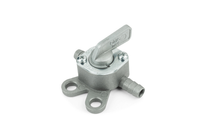 Rubinetto benzina universale da 8 mm con pratico interruttore On/Off, fissaggio al telaio. Consigliamo il rubinetto della benzina soprattutto per i motori con carburatori trasformati e collettori di aspirazione che non dispongono più di un collegamento a vuoto. Chiudendo semplicemente il rubinetto della benzina, si può evitare la fuoriuscita di benzina mentre si lavora sul carburatore.