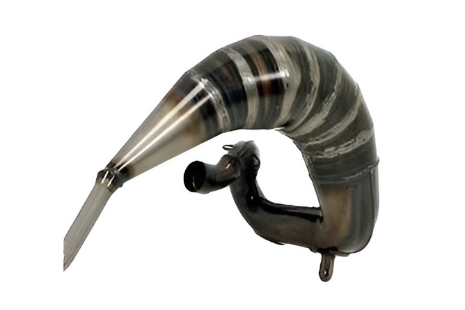- Il tubo di testa o collettore è il collegamento tra il cilindro e lo scarico e una guarnizione di scarico fornisce la tenuta necessaria. Nei sistemi omologati per la circolazione stradale, il tubo di testa è dotato di una restrizione prevista dalla legge. Alcuni rimuovono questo restrittore per aumentare la potenza.
